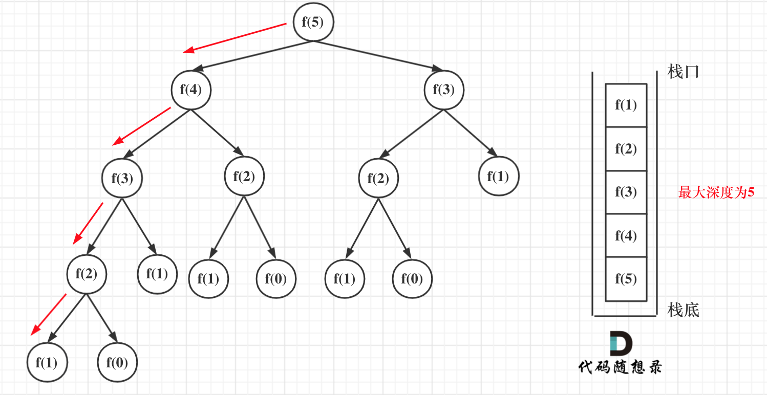 递归第n个斐波那契数的话,递归调用栈的深度就是n。