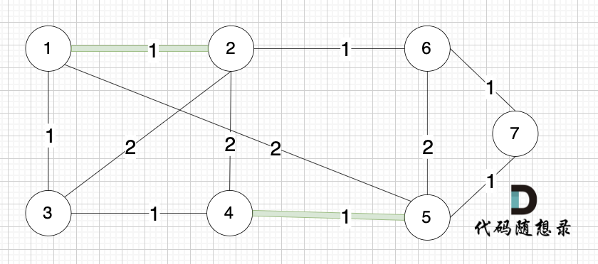选边(1,5),两个节点在同一个集合,不做计算。